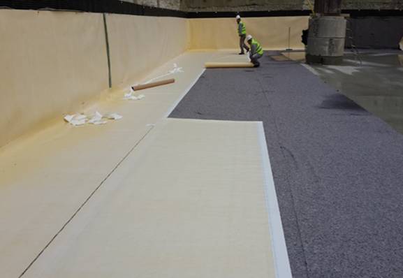 Perde yüzeyine Yapışkan Sikaprimer01 sürülerek hava sıcaklığına bağlı olarak bekletilir. Sikaprimer01 kurumaya başlayınca kendinden yapışkanlı Sikaproof P12 membran, jelatinleri kaldırılarak perde yüzeyine asıldı, ek yerleri 10cm bini yapılarak el yardımı ile ütülenerek perde yüzeyine tam anlamıyla yapışması sağlanır.