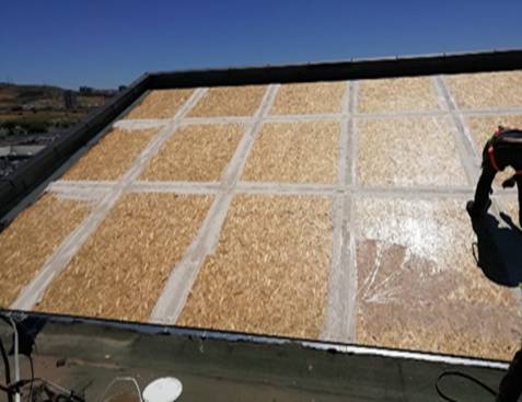 Osb levhaların tamamına ınovasta astar sürüldü, kuruma süresinden sonra astar üzerine ınovasta yama uygulandı ve yama üzerine son kat Top Coat sürülerek uv dayanımı yanında ısı yalıtımı da kazandırıldı.