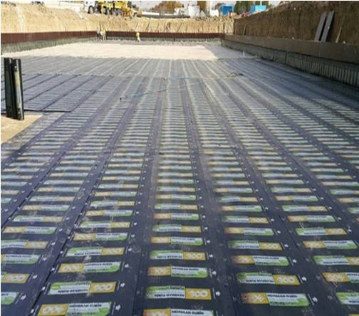 Grobeton yüzeyinin ince temizliği yapılarak yüzeye bitüm astar sürüldü. Astar sürülen grobeton üzerine birinci kat membran serbest serilerek ek yerleri şalümo ateşi eritilerek silindir vasıtasıyla yapıştırıldı.